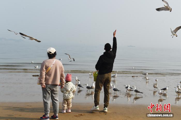 3月25日,山东烟台多个海滨景面迎去旅客。烟台连日去天色阴佳,气呼呼暖接连抬高,人们或者挨卡摄影,或者取海鸥、海豹互动,正在秋光中感触感染海滨乡市的温意。中新社记者 王娇妮 摄